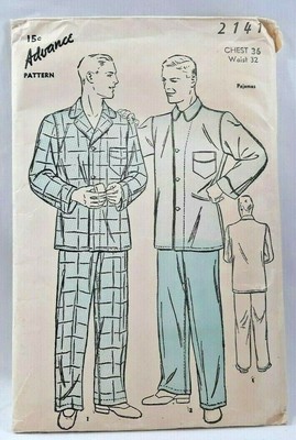 1930s Advance Sewing Pattern 2141 Mens Pajamas 2 Styles Size 36 Chest Antq 5553 Ebay